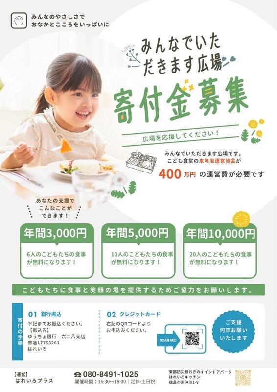 当社では現在、地域の未来を担う子どもたちを支援するため、子ども食堂「いただきますひろば」への協賛金募集活動を推進しております。